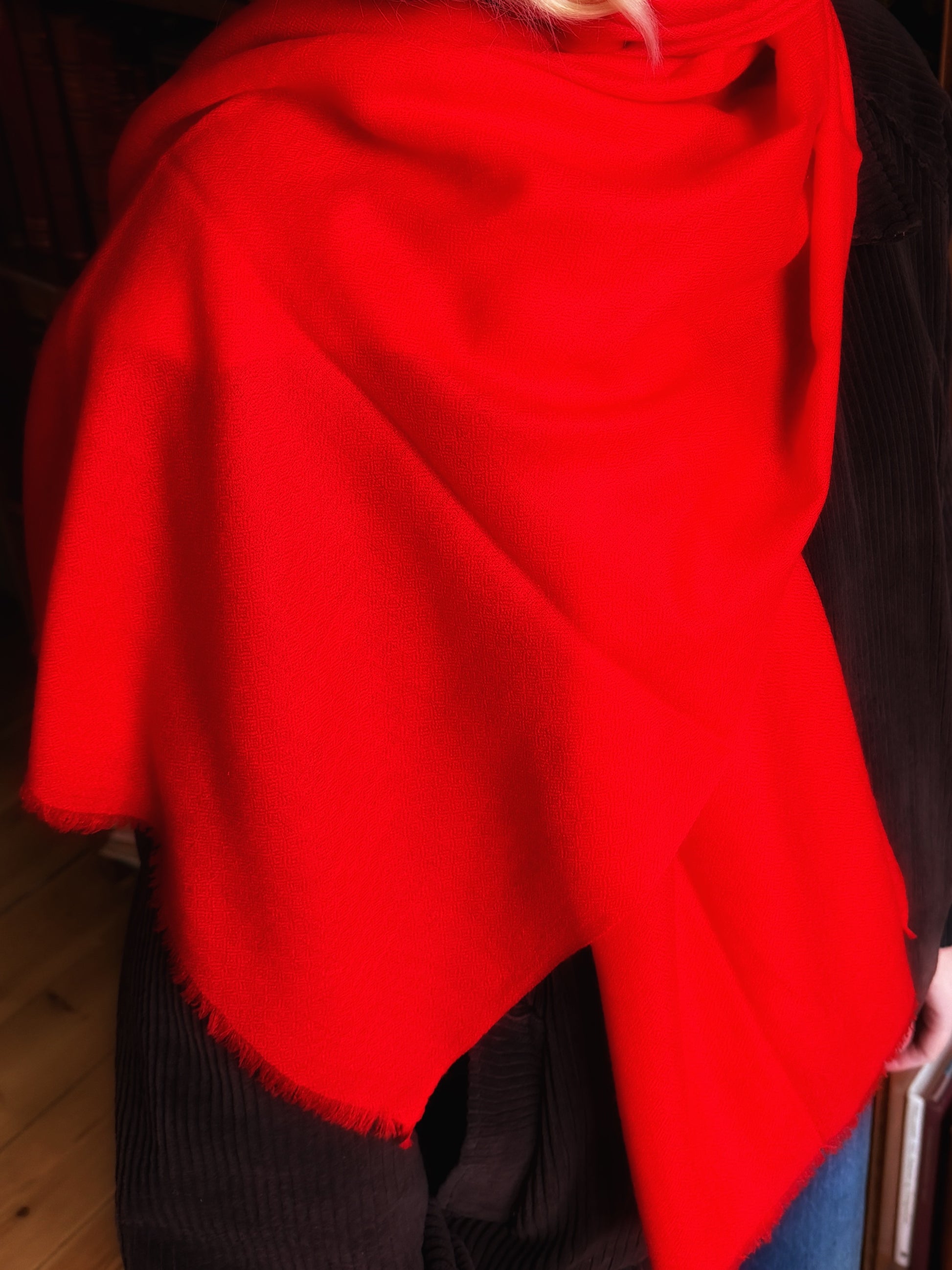 The Ragni Scarf is crafted from 100% fine wool. It's versatile: Use as a Stole, Scarf, or around your Hips.
